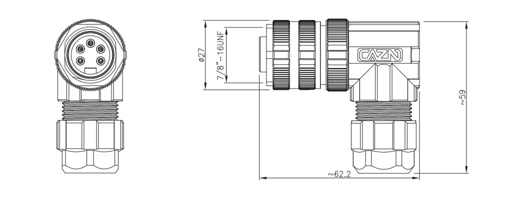 | 7/8 Angled Female Plastic Assembled Plug(Screw) | 7/8-S4-PLDP13 | 4 | ||