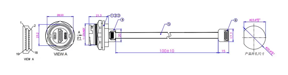 Gender: Female Back mount to R/A HDMI Male FFC Type