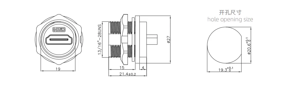 HDMI Female Back Mount PCB Receptacle(Threaded)