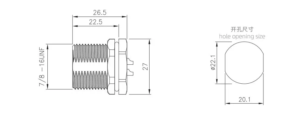 7/8 Female Back Mount Socket ( Solder, Screw M26x1.5 )