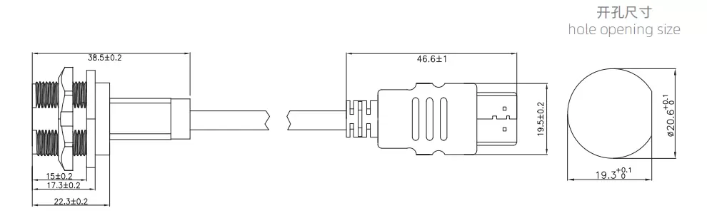 Gender: Female Back Panel Mount Receptacle to Straight Male Cable