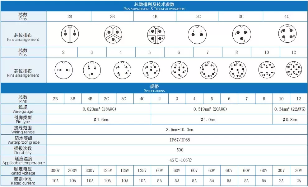 | Pins number: | 2-12 pins,Current: high current and low current |