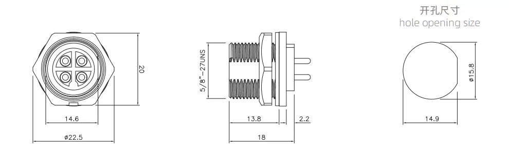 E10 Female Back Mount Solder Receptacle(Threaded)