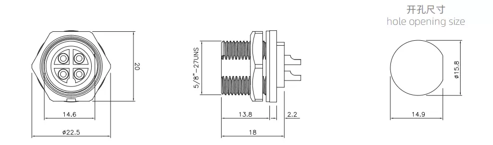 | E10 Female Back Mount Solder Receptacle(Threaded) | 60V | 5A | E10T-S4-PWF | 4 | ||