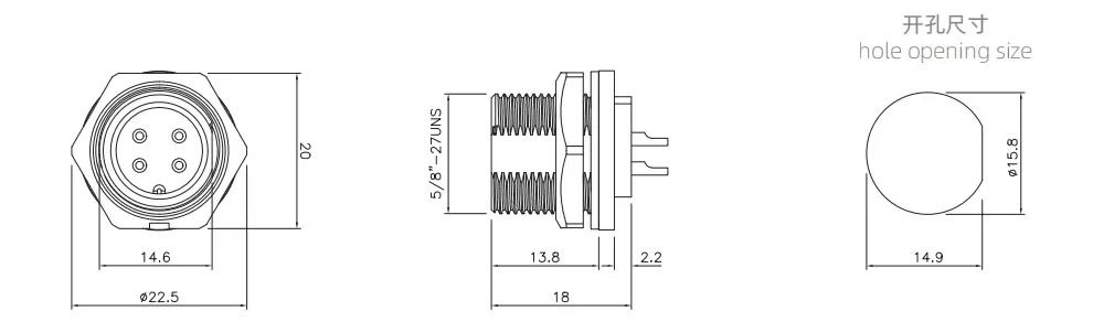 E10 Female Front Mount Solder Receptacle(Threaded)
