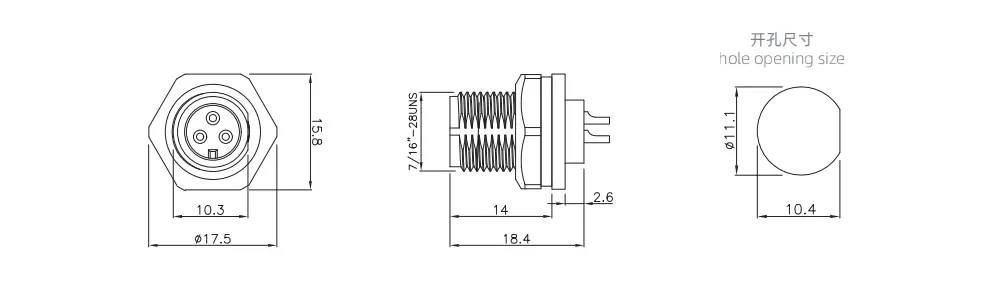 | E7 Male Back Mount Solder Receptacle(Threaded) | 60V | 2A | E7T-P5-PWF | 5 | ||