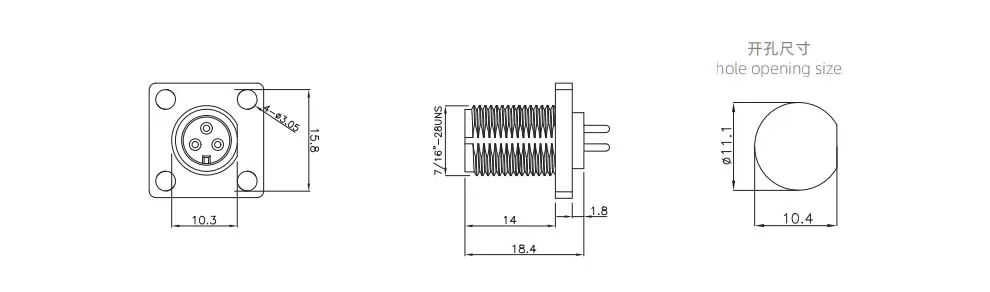 E7 Male Back Mount Solder Receptacle(Threaded)