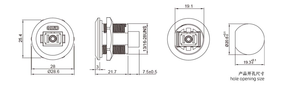 | EP-FDDI Single-mode Single-core Front Mount Receptacle(Threaded) | FDDI single-mode single-core | EP-FF1-PRB |