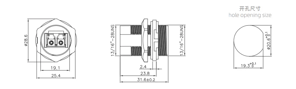 FDDI Single-mode Double-core Front Mount Receptacle(Threaded) | Single-mode Double-core | E13T-FF2-PRB |
