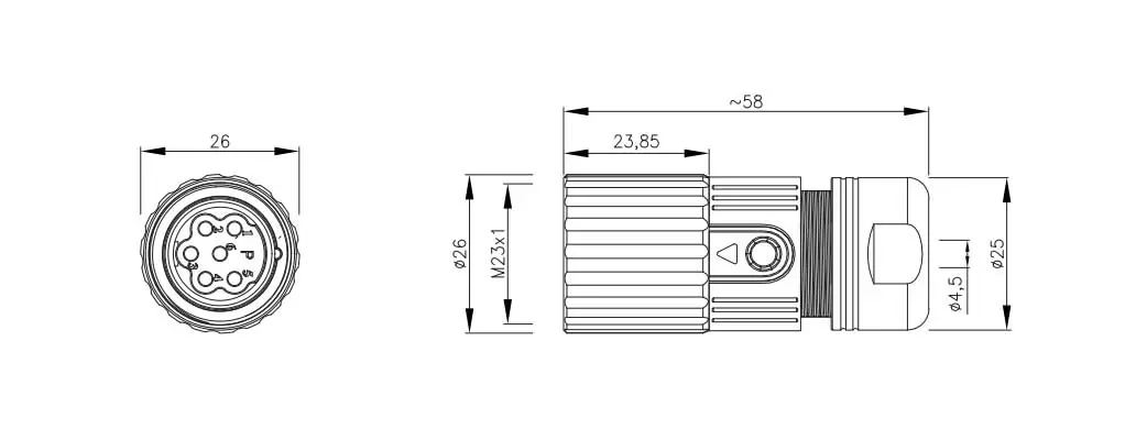 | M623 Signal Straight Female Metal Assembled Plug(Crimp) | M623-S6P-GCAP11 | M623-S6E-GCAP11 | 6 Pin | ||