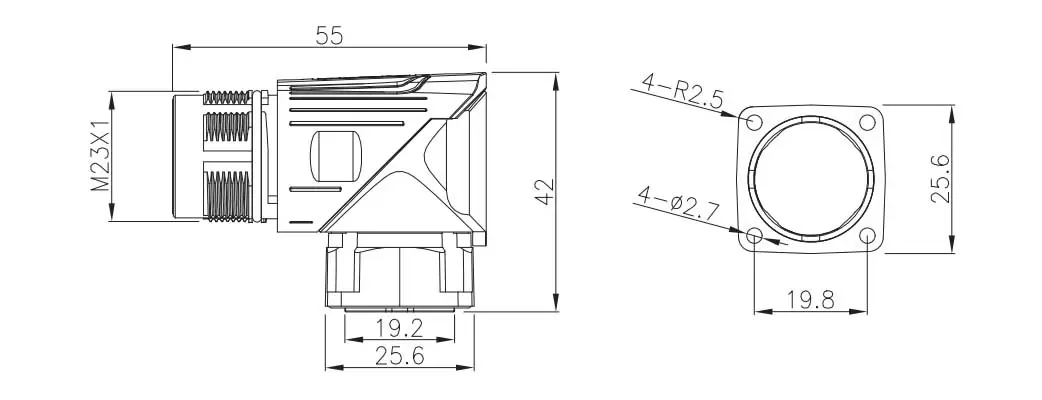 | M923 Power Male Angled Square Flange Assembled Socket(Crimp) | M923-P6-GCL | 6 Pin | ||