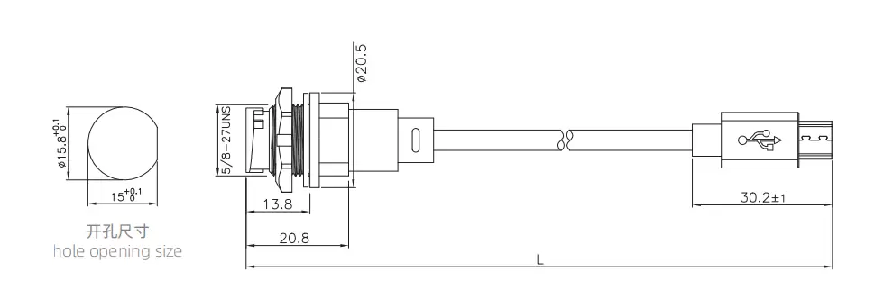 MICRO Female Back Mount Receptacle To Male Overmolded Cable(Threaded)