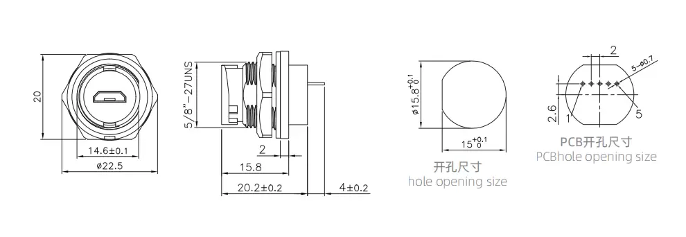 MICRO USB Female to Female Back Mount Receptacle(Threaded)