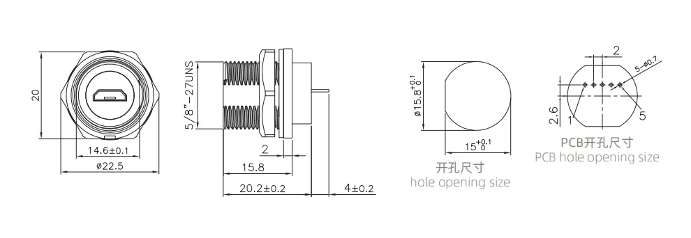 | MICRO USB Female Back Mount PCB Receptacle(Threaded) | E10T-FUM-PPF |