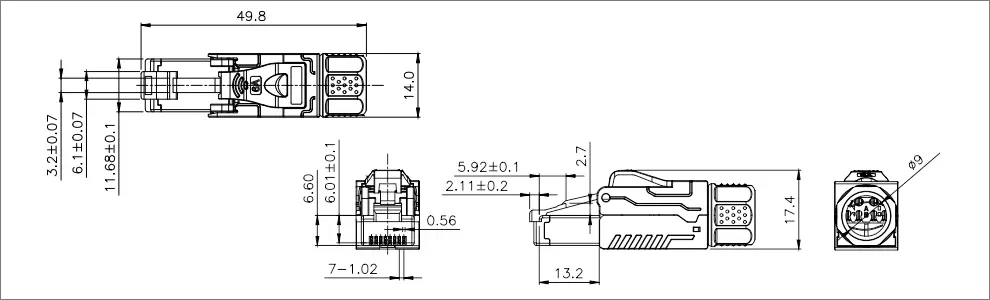 Industrial RJ45 connector CAT6A is an RJ45 connector designed specifically for industrial environments,Suitable for Cat6A standard data transmission, with higher data transmission speed and better resistance to interference.Interference capability, suitable for industrial applications that require higher bandwidth and more stable data transmission, applicable to