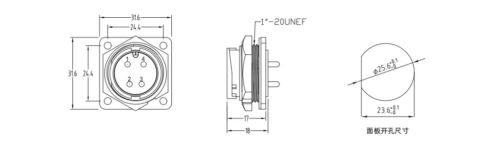 E16 Male Square PCB Receptacle(Bayonet) | 250~500V | 20A | E16B-P4-PPH | 4 | ||