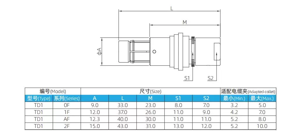 Home / Products / Push Pull Connector / F Series / TD1 Straight Plug / F Series TD1 Straight Short Plug