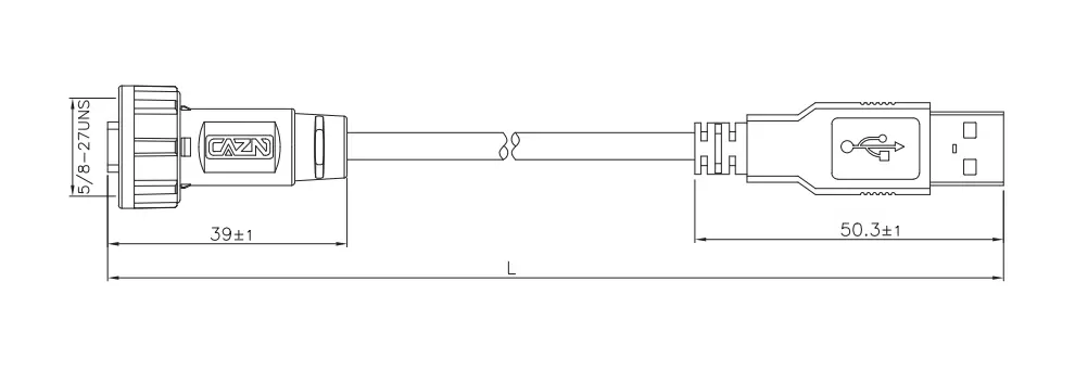 TYPE-C Female Back Mount Receptacle To USB Male Overmolded Cable(Bayonet)