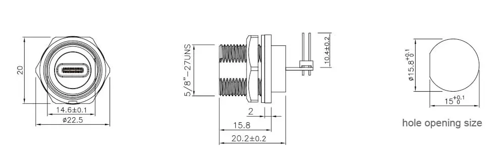 | E10-TYPE-C Female Back Mount Angled PCB Receptacle (Threaded) | TYPE-C 3.0 | E10T-FT3-PPF-90 |