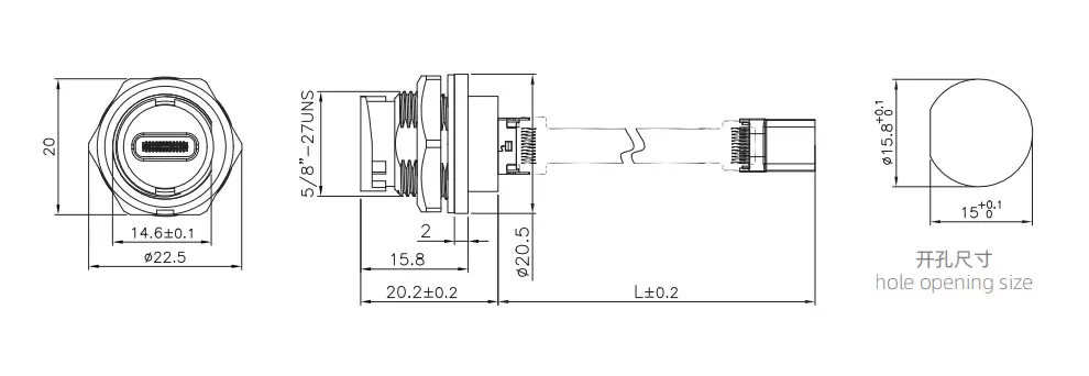TYPE-C Female/Male FPC Flat cable 3.1 speed(Threaded)