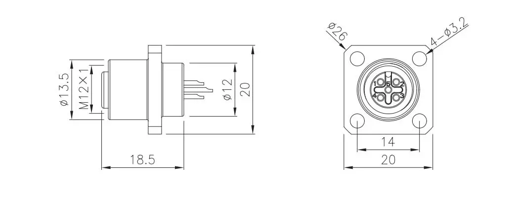 | M12 Square Flange Female Socket(solder, Screw14*14) | M12-S4B-GWH | 4B | ||