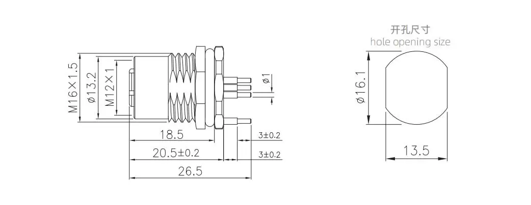 | M12 Female Back Mount Socket (PCB,Grounded type) | M12-S3A-GPFM16-JD | M12-S3A-GPFP9-JD | 3A | ||