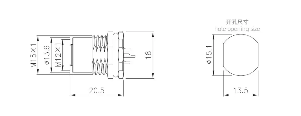 | M12 Female Back Mount Socket ((solder screw M15*1) | M12-S3A-PWFM15 | 3A | ||