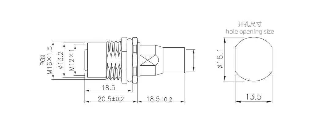 M12 Female Back Mount Socket Solder Screw M16*1.5/PG9