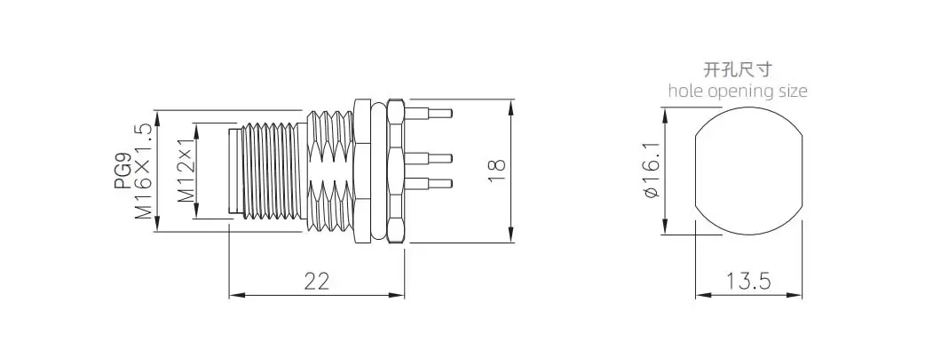 | M12 Male Back Mount Socket (PCB, Grounded type,Big screw) | M12-P3A-GPFM16-JD | M12-P3A-GPFP9-JD | 3A | ||