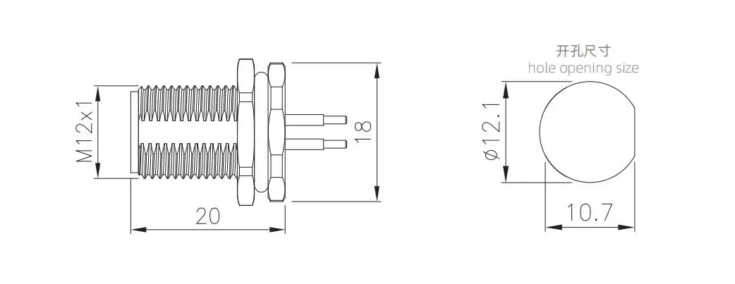 M12 Male Back Mount Socket (PCB, Screw M12*1)
