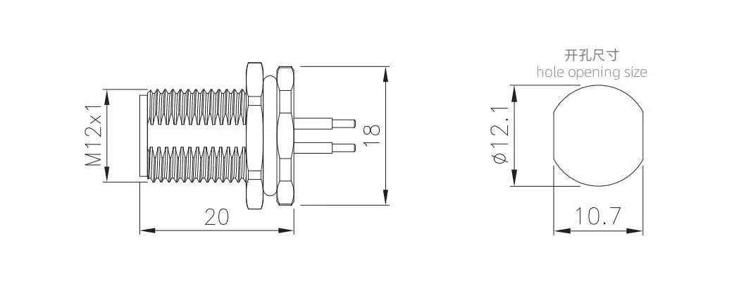 | M12 Male Back Mount Socket (PCB) | M12-P2A-GPFM12 | 2A | ||
