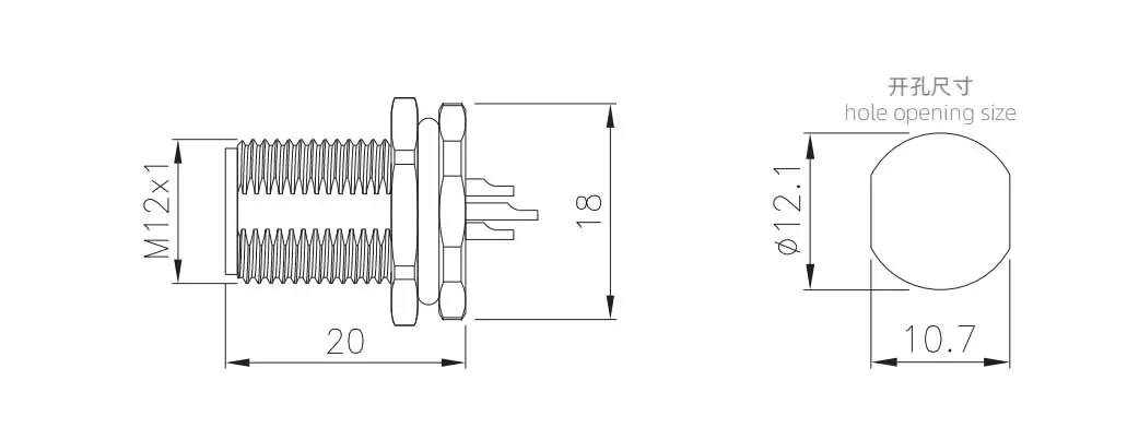 | M12 Male back Mount Socket (Solder) | M12-P4C-GWFM12 | 4C | ||