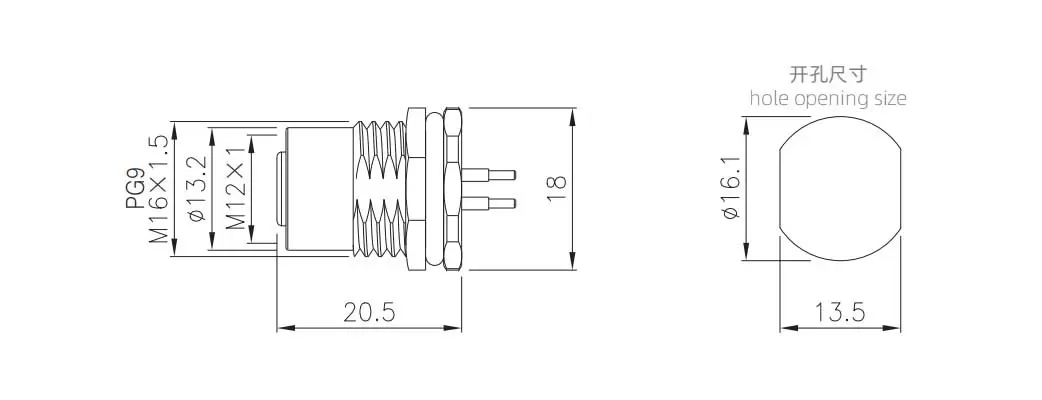 | M12 Zinc alloy shell Female Back Mount Socket (PCB ) | M12-S5B-GPFM16-ZA | M12-S5B-GPFP9-ZA | 5B | ||