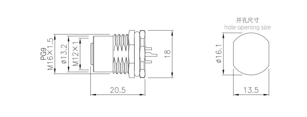 | M12 Zinc alloy shell Female Back Mount Socket Solder | M12-S5A-GWFM16-ZA | M12-S5A-GWFP9-ZA | 5A | ||