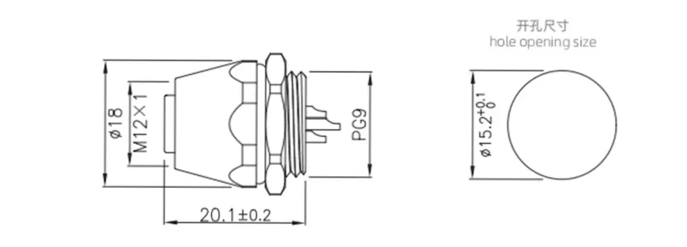 | M12 Female Front Mount Socket (Solder) | M12-S12A-GWBP9-ZD | 12A | ||