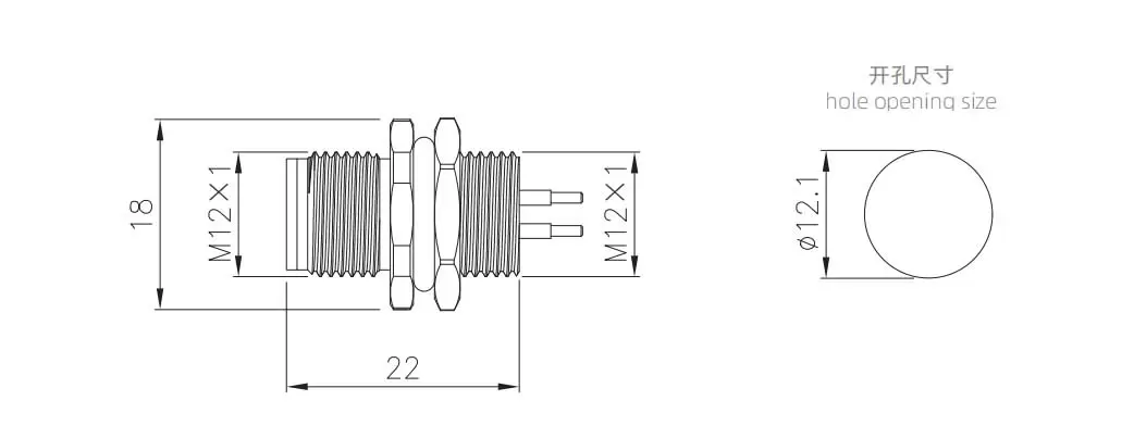 | M12 Male Front Mount Socket (PCB) | M12-P12A-GPBM12 | 12A | ||