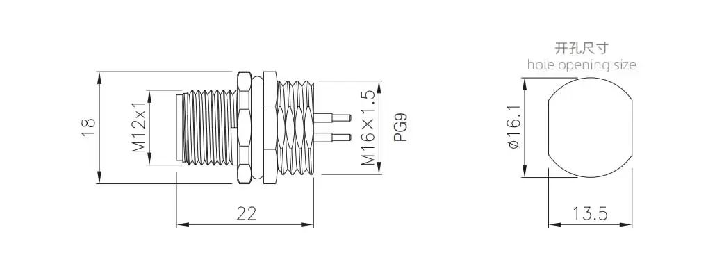 | M12 Male Front Mount Socket (PCB) | M12-P3C-GPBM16 | M12-P3C-GPBP9 | 3C | ||