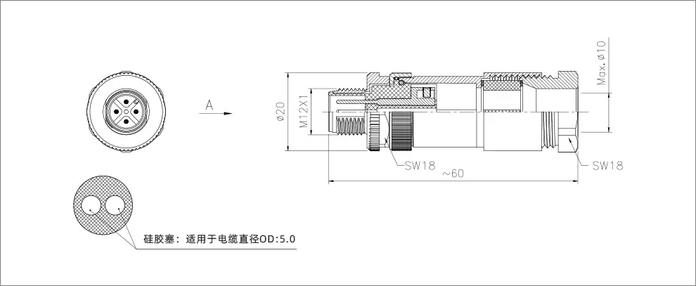 Structure type: Straight Male Double Entry Line Assembled Plug