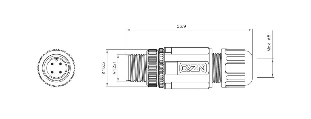 Straight Male Plastic Assembled Plug | M12-P6A-PWAP7 | 6A | ||
