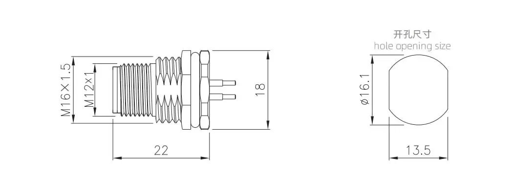 | M12 Male Back Mount Socket (Power type, Solder, Screw M16*1.5) | M12-P2T-GPFM16 | M12-P2T-GPFPG9 | 2T | ||