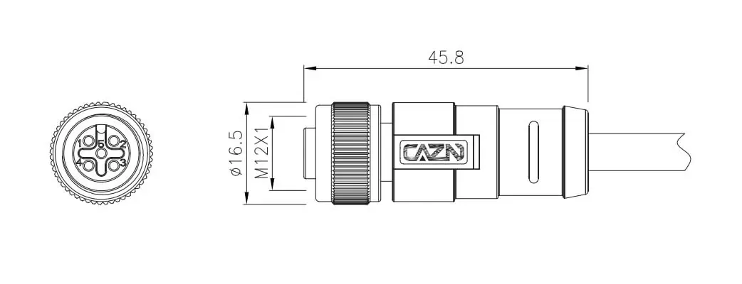 | M12 Straight Female Overmolded Plug | M12-S5A-MWA-xxPV-S-ZN | M12-S5A-MWA-xxPV-ZN | 5A | ||