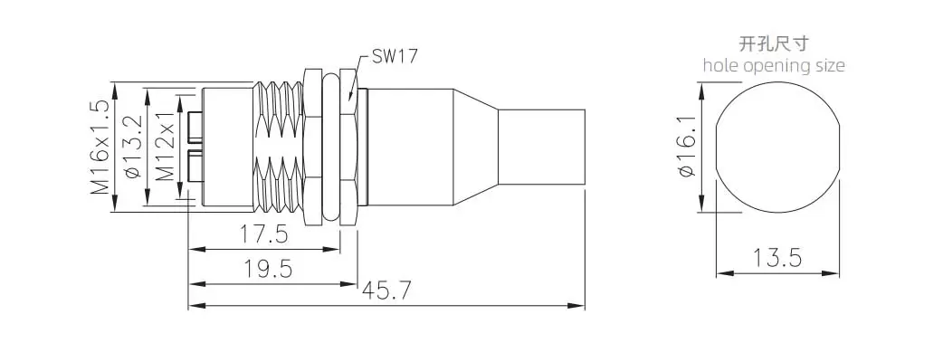 M12 Female Front Mount Socket (Data type, PCB, Screw M16*1.5)