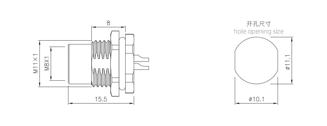 | M8 Female Back Mount Socket(Solder, Screw M11*1) | M8-S8A-GWFM11 | 8 Pin A-code |