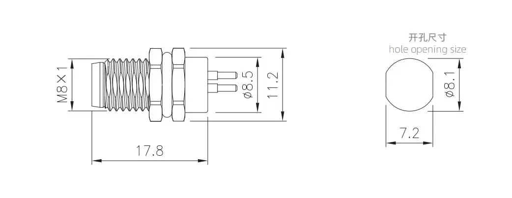 | M8 Male Back Mount Socekt(PCB)Screw M8x0.5 | M8-P3A-GPFM8 | 3 Pin A-code | ||