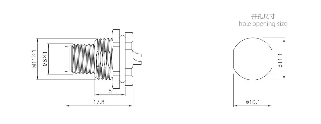 | M8 Male Back Mount Socket(Solder, Screw M11*1) | M8-P8A-GWFM11 | 8 Pin A-code |
