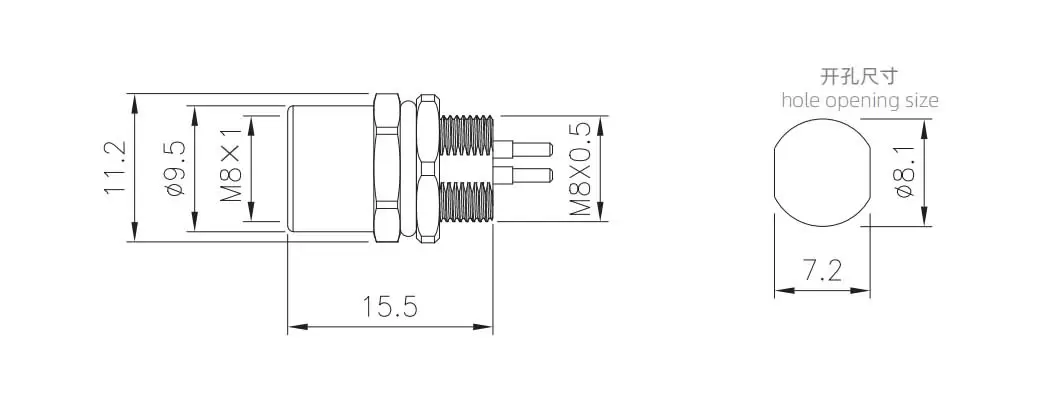 M8 Female Front Mount Socket(Solder, Screw M8*0.5, bullet type)