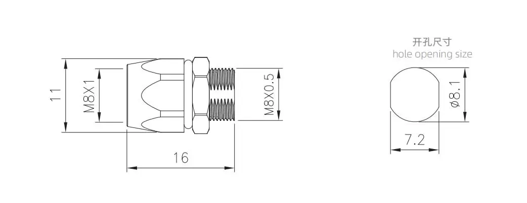 | M8 Female Front Mount Socket(Solder, Screw M8*0.5, bullet type) | M8-S8A-GWBM8-ZD | 8 Pin A-code |