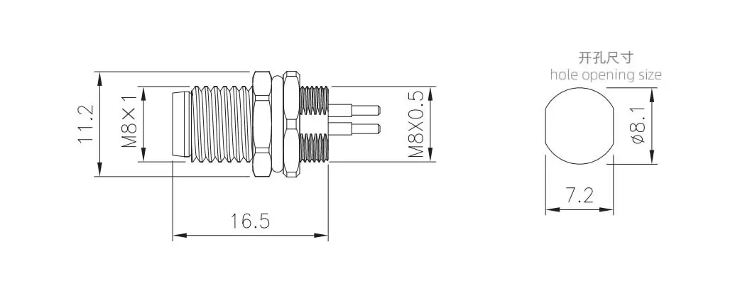 | M8 Male Front Mount Socket(Metal interface) | M8-P3A-GWFM8-GK | 3 Pin A-code | ||