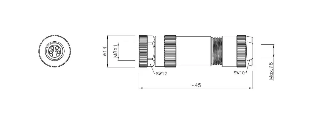 | M8 Straight Female Metal Assembled Plug 4A Screw terminal | M8-S4A-GLAP7 | 4 Pin A-code |
