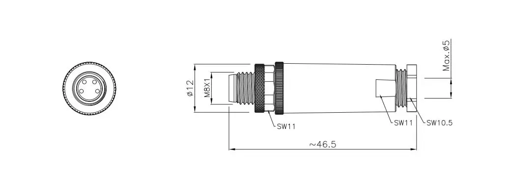 | M8 Straight Male Plastic Assembled Plug 5B Solder | M8-P5B-PWA05 | 5 Pin B-code | ||